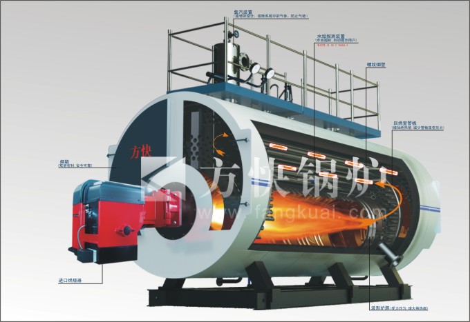 方快燃油气蒸汽锅炉,采用经典的顺流湿背式三回程结构,热效率达95%以上。湿背式结构燃烧室完全浸入水中冷却条件好,后管板不受高温烟气冲刷改善了锅炉运行环境,增加了使用寿命。波纹炉胆即增加了受热面又缓解热胀冷缩可能对燃烧室的损伤。大炉膛容积燃烧完全,充分节约燃料。免费咨询电话:400-100-9030